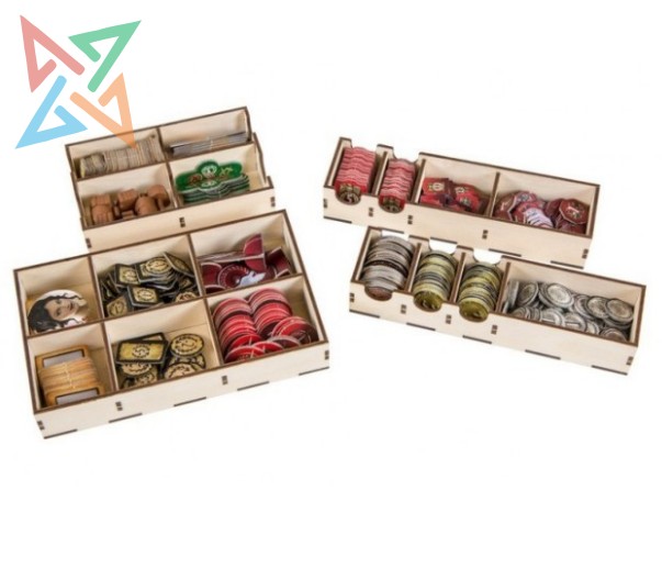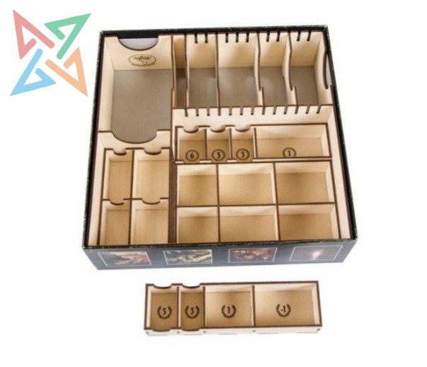 Nuestro maravilloso organizador fue diseñado para albergar todas las expansiones hasta Babel. Hemos aumentado la capacidad de almacenamiento de cartas y ahora ofrecemos 4 separadores ajustables para separarlas. Este kit ahora incluye 4 bandejas extraíbles para fichas, lo que reduce considerablemente el tiempo de montaje y desmontaje.