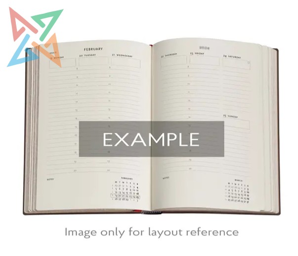 Extras: bolsillo interior, cinta marcapáginas, páginas de notas y libreta de direcciones (según edición)