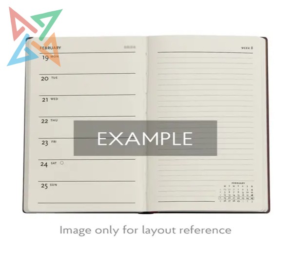 Extras: bolsillo interior, cinta marcapáginas, páginas de notas y libreta de direcciones
