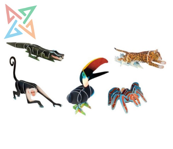 Aprende todo sobre las asombrosas criaturas que habitan en selvas y bosques tropicales y construye cinco modelos de animales. ¡No se necesitan herramientas, solo tienes que encajar las piezas!