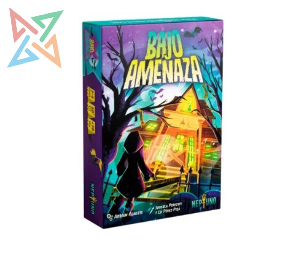 Bajo Amenaza es un juego cooperativo, de suspenso y de construcción grupal de mazo para tentar la suerte, donde debemos encontrar la salida antes que el asesino nos elimine uno a uno.