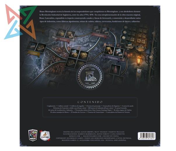 Brass: Birmingham recrea la historia de los emprendedores que compitieron en Birmingham y sus alrededores durante la Revolución Industrial de Inglaterra, entre los años 1770 y 1870. En esta reimplementación de la obra maestra original, Brass: Lancashire, expandirás tu imperio construyendo canales y líneas de ferrocarril, y construirás y desarrollarás varios tipos de industrias, como fábricas algodoneras, minas de carbón, talleres, cervecerías, fundiciones de hierro y alfarerías.
