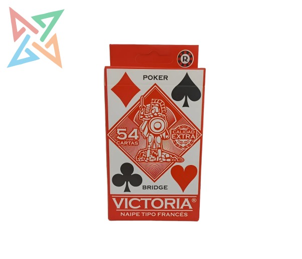 Mazo de 54 naipes franceses Victoria en calidad extra, ideal para juegos clásicos, magia, casinos y uso intensivo. Acabado resistente y presentación profesional.