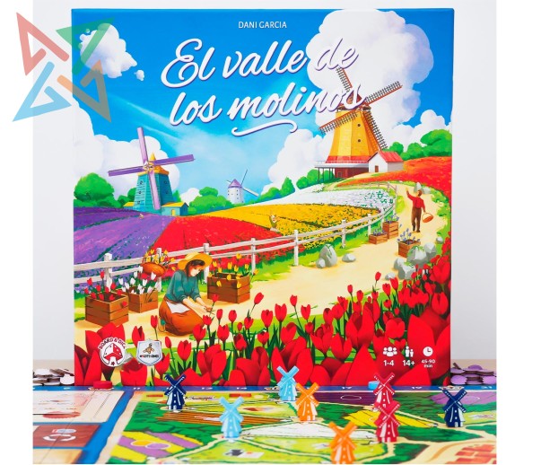 En El valle de los molinos, un juego inspirado en la Ruta de las flores, hasta 4 jugadores asumen el papel de agricultores y empresarios de tulipanes.