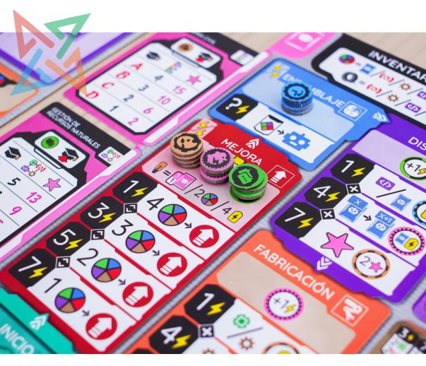 ESCUELA DE ROBOTS es un juego competitivo de construcción de motores, que se juega simultáneamente.