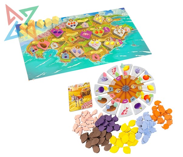 Con los recursos pertinentes, los jugadores podrán hacer entregas para cumplir con los requisitos de las distintas regiones, y así acumular puntos de victoria. Además, una vez se agotan todos los requisitos de una región, se premia con una finca en esa región al jugador que haya entregado la mayor cantidad del recurso indicado en su loseta de finca (¡y suelen ser muchos puntos!). La partida termina cuando se coloca la última ficha de finca en el tablero.