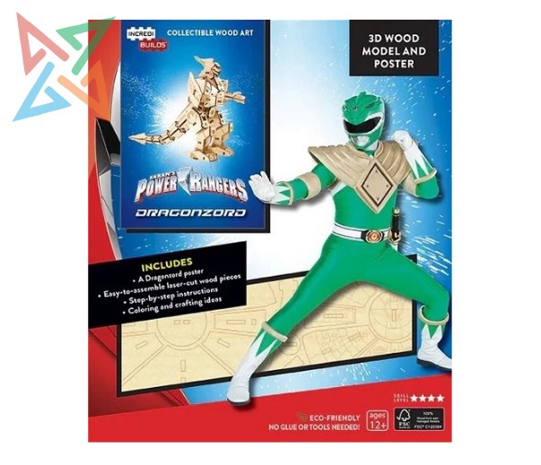 ¡Construye y colorea tu propio modelo 3D del Green Ranger Dragonzord! Este Zord único en su tipo es el más malvado de todos. Ni siquiera Rita Repulsa tiene una oportunidad contra el poderoso Dragonzord. Los fanáticos de Mighty Morphin Power Ranger ahora tienen la oportunidad de construir su propio modelo de madera del vehículo de asalto titánico del Green Ranger. ¡Este kit, que incluye un póster de Power Rangers, es imprescindible para los fanáticos de todo el mundo!