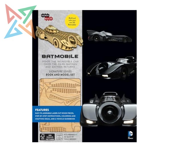 Construye tu propio Batimóvil con este kit de modelo IncrediBuilds que incluye un folleto a todo color sobre el icónico vehículo de las películas de Batman del director Tim Burton .