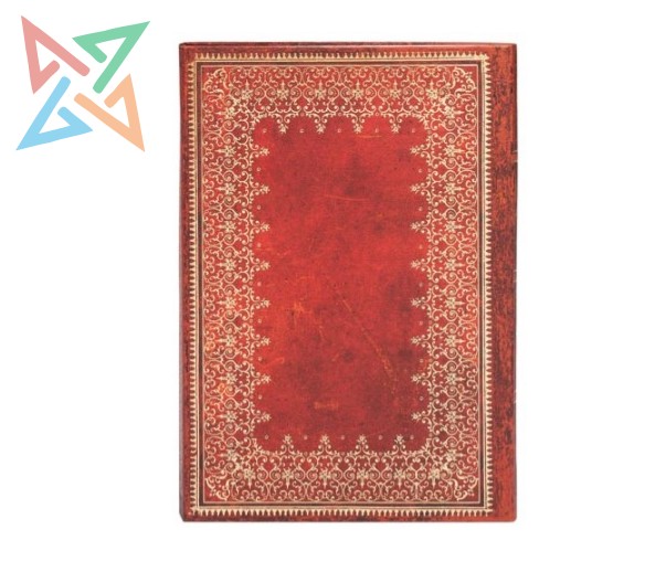 Las encuadernaciones renacentistas en piel se solían teñir con vivos tonos rojizos para resaltar así los intrincados ornamentos dorados que las decoraban. Basándonos en ese estilo hemos creado el diario Hoja de Oro, que recrea la intensidad y la ligereza características del diseño de aquellos libros.