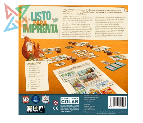 En este divertido juego de cartas, los jugadores deben armar la mejor primera plana posible antes del cierre de edición. Seleccioná titulares, fotos y secciones para ganar prestigio. Ligero, rápido y con un toque de humor, Listo para Imprenta combina estrategia y risas en partidas cortas y competitivas.