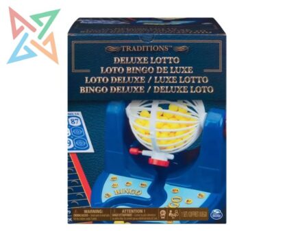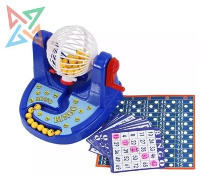 Bingo con base integrada, Jaula de bingo de plástico, 90 bolas numeradas, 48 cartones de bingo, tablero maestro, marcadores e instrucciones.