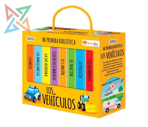 Una maravillosa y rica biblioteca te presentará ocho maravillosos libros sobre vehículos llenos de divertidas ilustraciones. ¡Aprender leyendo y jugando nunca ha sido tan fácil!