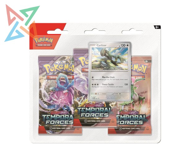 Versión en español del set Temporal Forces, con 3 sobres que incluyen cartas nuevas de la expansión, y carta promo de Cyclizar. Ideal para mantenerse actualizado con la línea oficial del TCG en español. (Basado en el formato del blister oficial) (La Batikueva Store)
