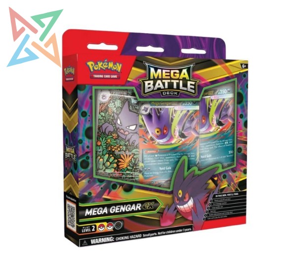 Mazo preconstruido del Juego de Cartas Coleccionables Pokémon, centrado en Mega Gengar EX. Diseñado para jugar de forma inmediata, ofrece una baraja potente ideal para jugadores que buscan partidas rápidas y competitivas.