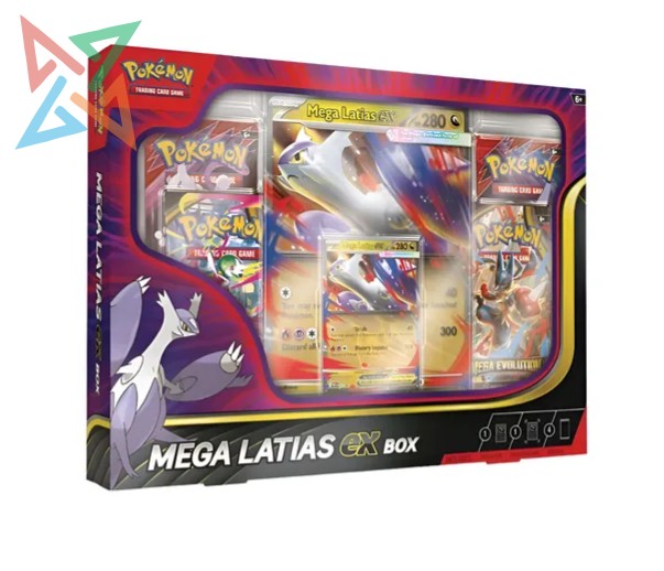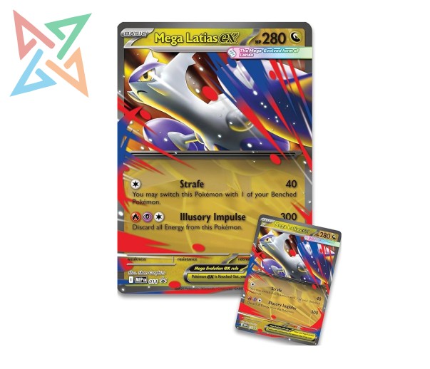 La caja Pokémon TCG: Mega Latias ex incluye 1 carta promocional holográfica con Mega Latias ex. También recibirás 1 tarjeta promocional lenticular de gran tamaño con Mega Latias ex.