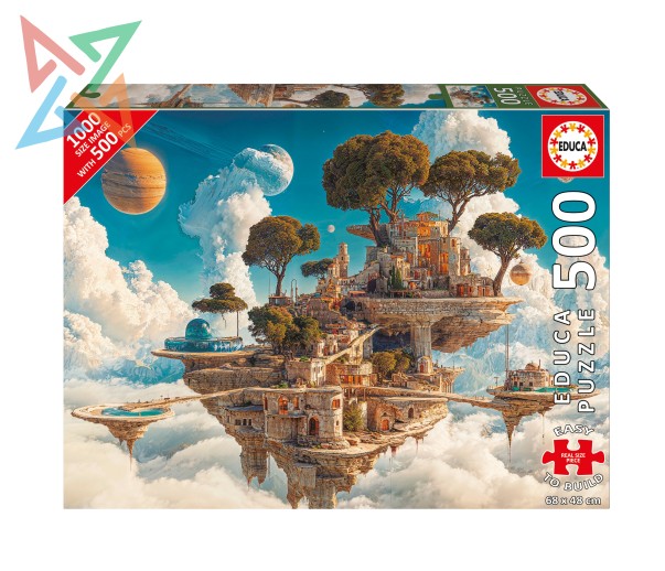 Ilustración de un reino fantástico entre nubes. Ideal para entusiastas de la fantasía y armados relajados.