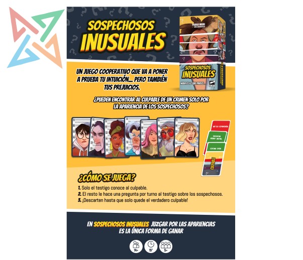 Un grupo intenta descubrir quién es el sospechoso basándose solo en descripciones subjetivas. Un juego rápido, divertido y perfecto para jugar en grupo y reírse de las apariencias.